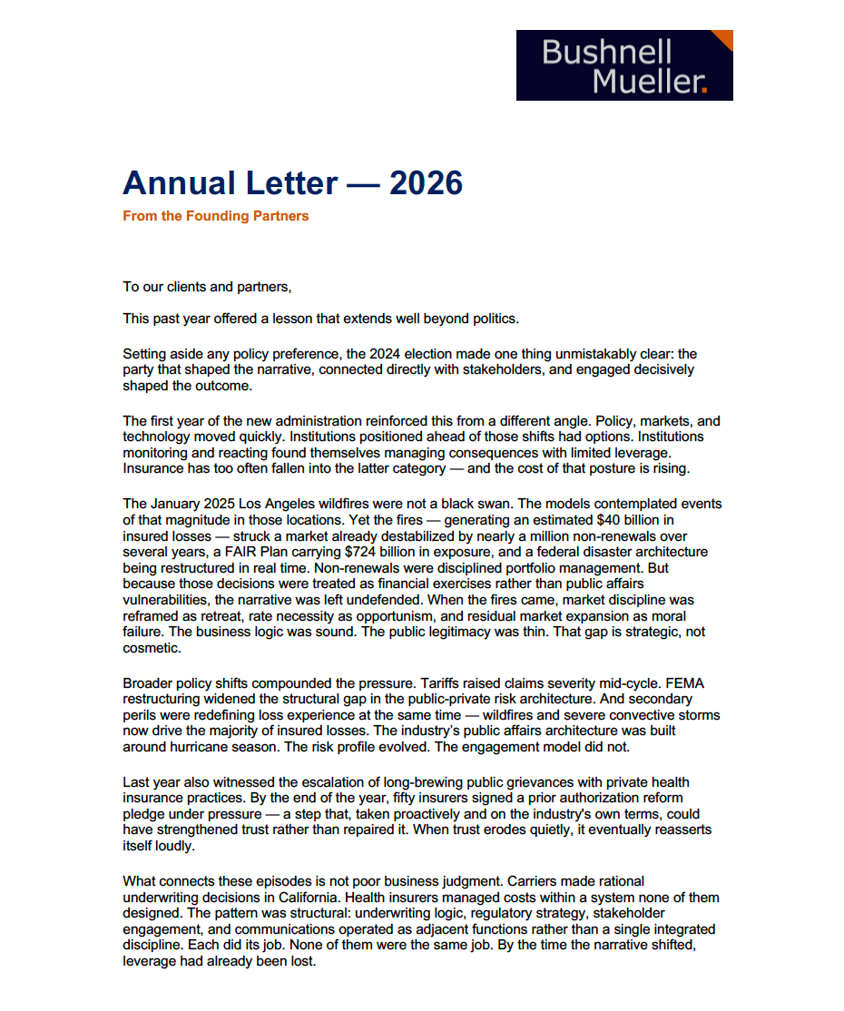 Our 2026 annual letter from the founding partners: what the past year revealed about the cost of reactive public affairs...
